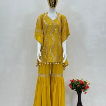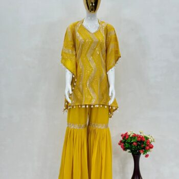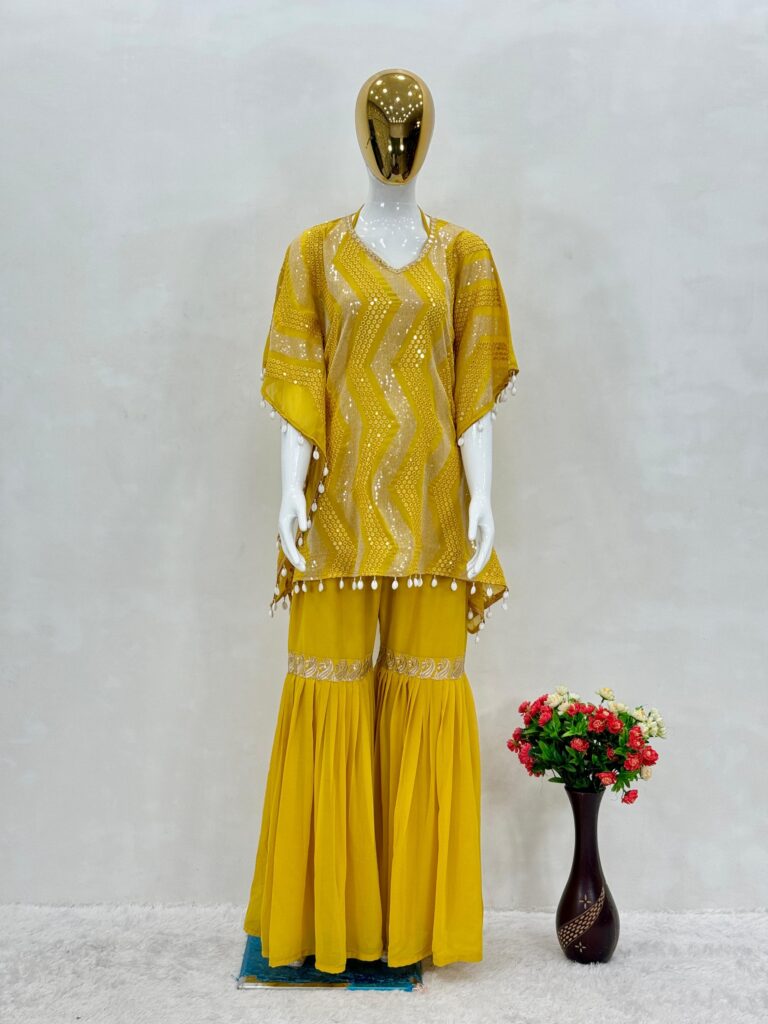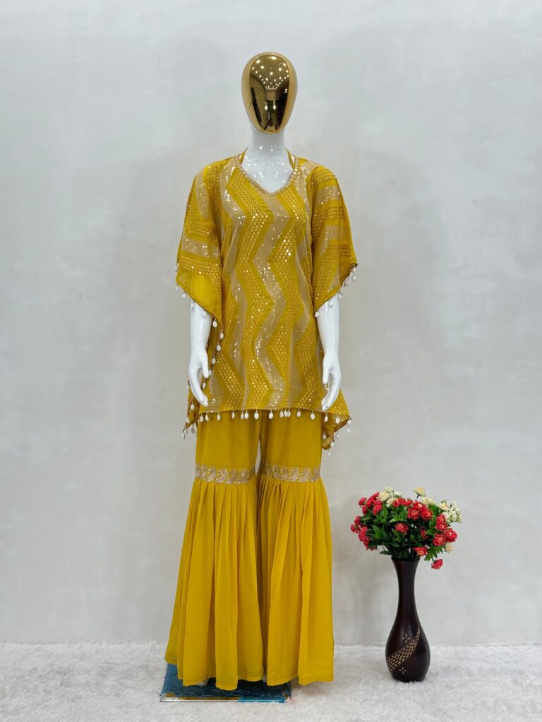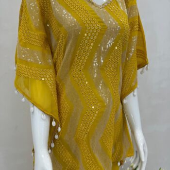 KAFTAN: Heavy Faux Georgette fabric with dazzling 3MM sequins embroidery and elegant kodi lace work