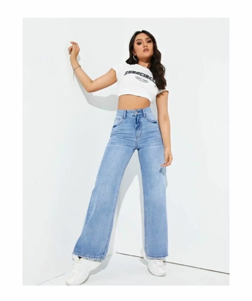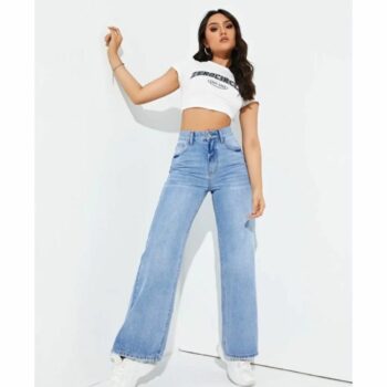 Upgrade your denim collection with our High Waist Whisker Wash Wide-Leg Denim. Crafted from pure denim, these jeans offer a comfortable fit with a stylish whisker wash effect. The ice blue shade adds a trendy touch, making it a must-have for every wardrobe.