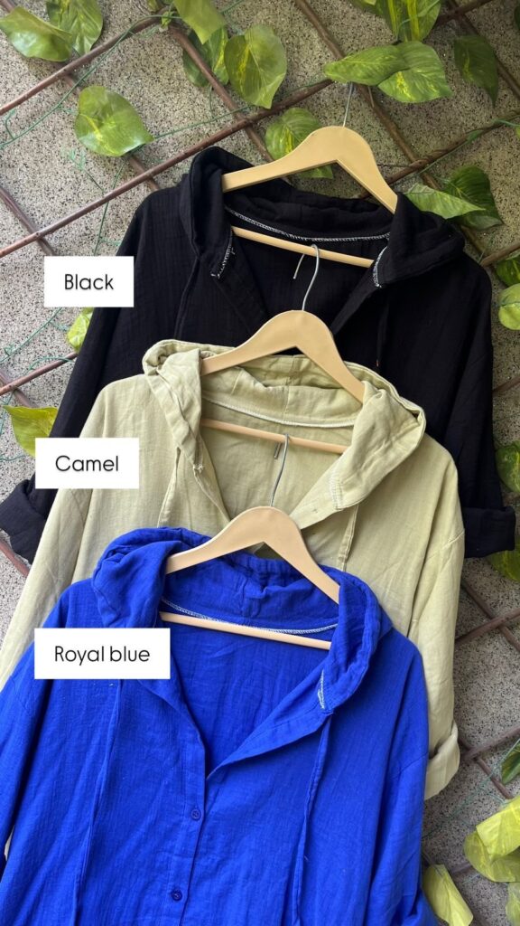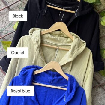 • Super breathable cotton mulmul – perfect for all-day comfort! • Free size – fits up to 44″ bust comfortably • Trendy hoodie style – casual & cool • Three gorgeous shades to choose from! • Length: 27 inches – ideal for leggings, jeans & more • Double deal delight: